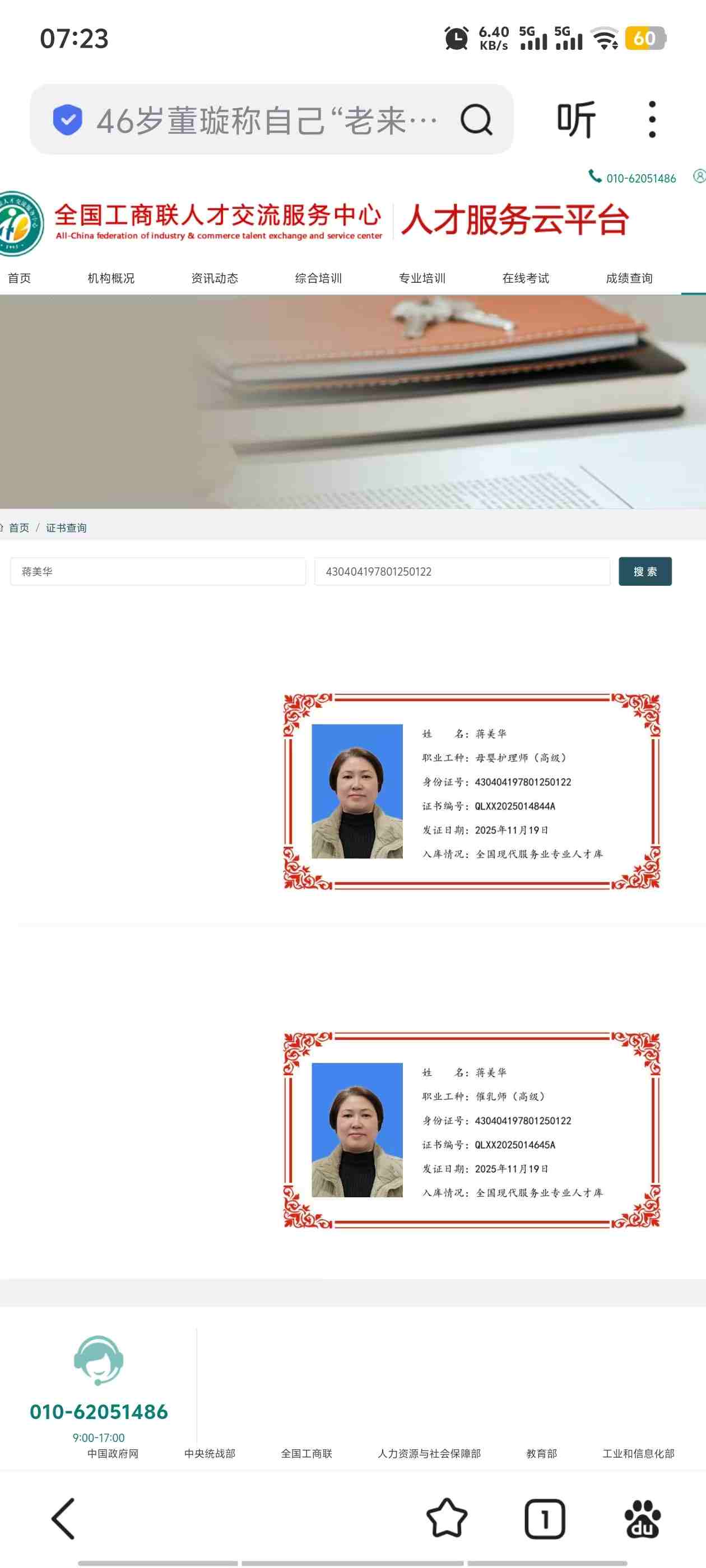育儿嫂(可住家) 姓名 :蒋美华 籍贯 :湘(衡阳) 年龄 : 47 学历 :大专 民族 :汉 身高 : 162cm 语言:普通话,衡阳话,懂粤语 家庭情况:已婚 自我评价?:首先我是一位11岁孩子的母亲。独立自强,细心体贴,爱笑,喜欢吃食,是我个人性格及爱好。生活不易让我知道月子里没有爱护好自己,只换来后期的养生,所以进入这个行业,一为多赚钱,二为需要照顾的月子产妇。或许你的选择,我的细心能带给你一个健康.快乐.无忧的月子时光。 专业技能:母婴护理 擅长菜系:湖南菜,粤菜 擅长技能:烹饪 技能证书:四级育婴证,高级母婴护理师证,高级催乳师证。(附加初级会计师证,证券从业资格证,道路桥梁工程师证) 工作经历:我是一位活到老,学到老的女性。工作从会计会所到证券公司,到道路桥梁工程师,如今的母婴护理行业,现就职于琅悦月子中心母婴护理员。