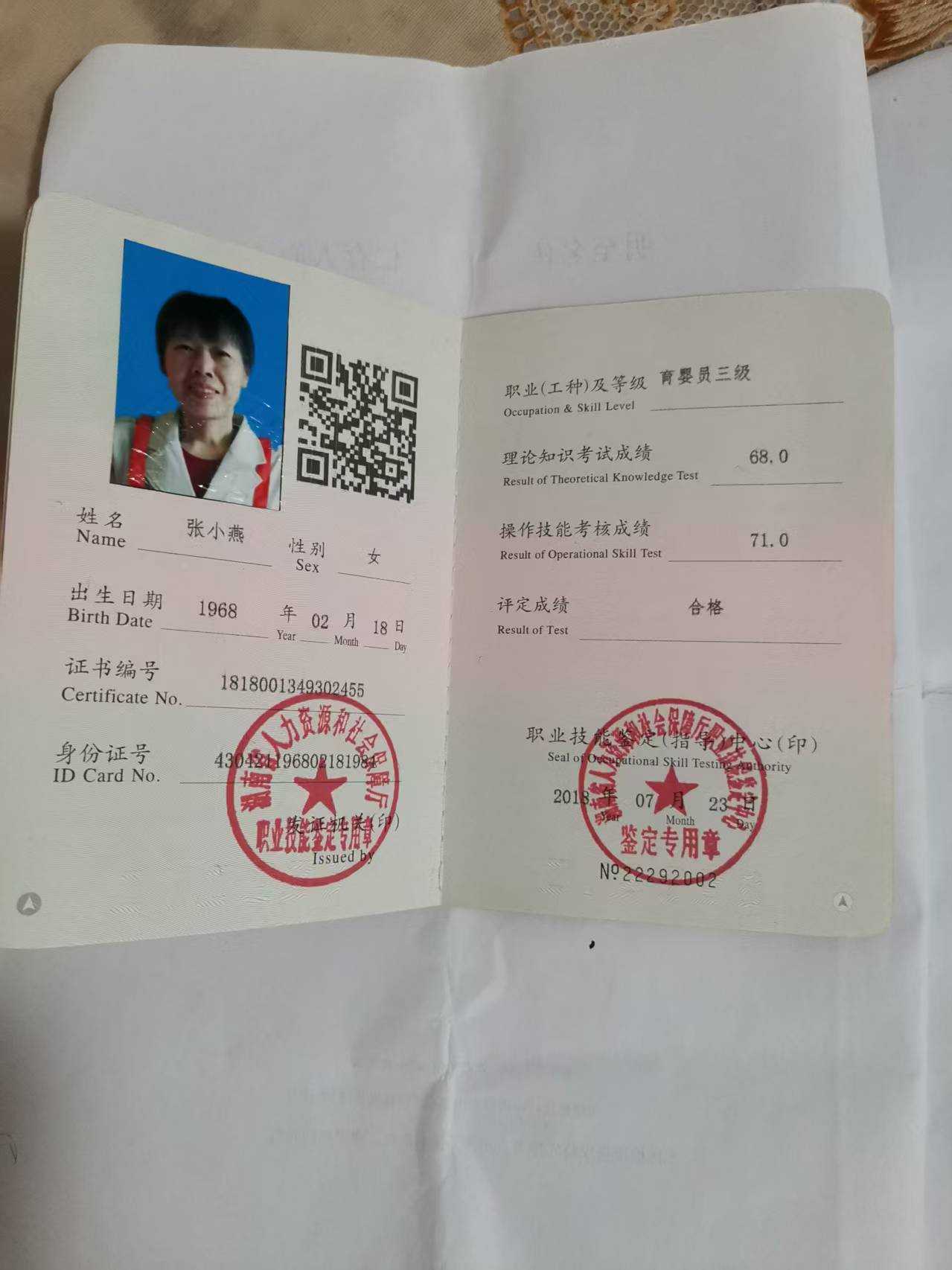 育儿嫂(可住家) 姓名 :张小燕 7年高级育婴师 籍贯 :湘(衡阳) 年龄 : 56岁 学历 :高中 民族 :汉 工龄 : 7年 身高 : 1.55m 语言:国语 家庭情况:已婚 自我评价:积极阳光,易沟通,好相处!做事耐心,细心!有亲和力! 专业技能:家政服务 擅长菜系:本地菜,清淡为主!煲汤 擅长技能:月嫂,育婴员,家务!! 技能证书:高级育婴员证!母婴护理证! 工作经历:7年 至2017年4月至10月在本市做育婴员,辅助家务半年!因合同到期了,下单!2017年11月至2018年11月,在本市(锦绣雁城)做育婴员辅助家务一年!照顾宝宝日常合同到期下单!2018年12月至2019年12月在本市(耀江花园,天鹅堡)做育婴员辅助家务,宝宝辅食添加!照顾宝宝日常!2020年1月至12月在本市(南岳)做育婴员,辅助家务,照顾宝宝日常1年下单!2021年1月至6月,在衡山做育婴员半年,下单!2021年6月至12月在本市做育婴员辅助家务,半年下单!2022年2月至12月在武汉市,洪山区做育婴员,辅助家务,照顾宝宝日常!2023年3月至11月在本地杉桥,本市(人行花园)做育婴员辅助家务,照顾宝宝日常!2024年1月至4月在本市(微爱美地月子中心)做一对一月嫂,及医院陪护!5月至8月在本市帮朋友忙做育婴员,辅助家务,照顾宝宝日常!现在休息!