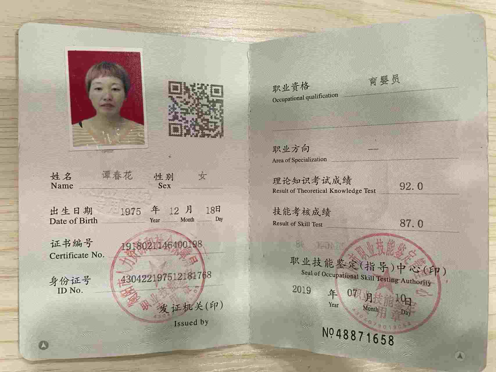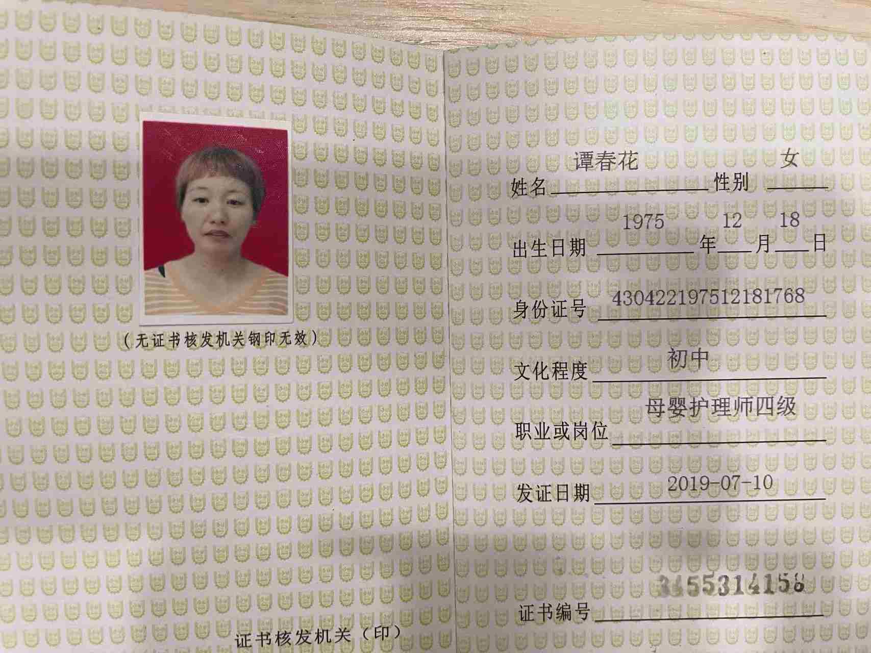 育儿嫂(可住家) 籍贯:湘(衡阳) 年龄:50岁 学历:初中 民族:汉族 工龄:5年多 身高:158 语言:普通话 家庭情况:已婚已育,孩子已成年 自我评价:性格温柔大方,爱笑, 喜欢宝宝,有耐心爱心,好沟通 专业技能:带小宝宝,洗澡抚触等 擅长菜系:衡阳家常菜 技能证书:母婴护理证,育婴师证 工作经历:带第一个宝宝从一个多月带到一岁八个月。第二个月宝宝50多天带到3岁九个月。跟宝宝家人相处融洽