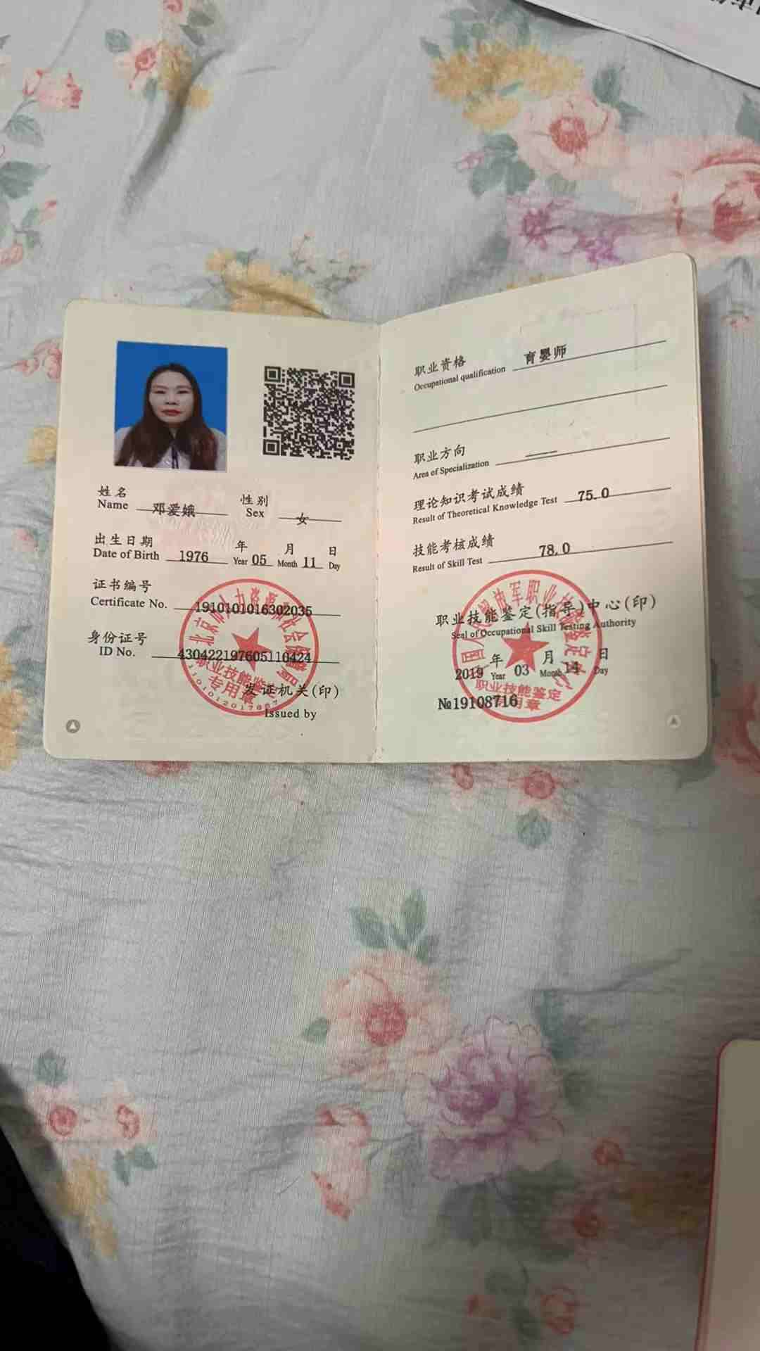 姓名:邓爱娥 性别:女 民族:汉 出生年月:1976年5月8日 年龄:48岁 学历:高中 工龄 : 2015-2024(9年) 身高 : 158m 语言:汉语 家庭情况:女儿已结婚,儿子已工作 自我评价:乐观开朗,待人热情、真诚 专业技能:婴幼儿的日常的护理,早期教育,习惯培养及调整,辅食添加及制作 擅长菜系:湘菜 个人优势: ★8年母婴护理工作经验 ★独立照顾宝宝,熟悉新生儿常见问题,为雇主建立喂养基础 ★产后精细化照顾,烹饪营养均衡月子餐 自我评价: 本人具备精湛及扎实的专业技能,具备独立照顾宝宝并且兼顾部分家务的能力。善于学习新知识,有良好的适应能力。本人性格乐观开朗,为人正直坦诚,善于沟通,做事认真负责。无论是从事新生儿月嫂工作还是长期的育婴师工作,都能与雇主及其家庭成员融洽相处,深得每一位宝妈的好评。 工作经历 : 2017 年 11 月至 2019 年 3 月:湖南省衡阳市立新七巷做高级育婴师岗位,照顾 11 月大宝宝。 2019 年 5 月至 6 月:湖南省衡阳市太平小区做月嫂岗位。2019 年 7 月至 9 月:在衡阳市阳辉桥做月嫂岗位。 2019 年 10 月至 2020 年 4 月:衡阳市祁东县做月嫂岗位。 2020 年 5 月至 2020 年 7 月:衡阳市常宁县做月嫂岗位。 2020 年 8 月至 2020 年 9 月:衡阳市常宁县做月嫂岗位。 2020 年 10 月至 11 月:衡阳市书香门第小区做月嫂岗位。2020 年 12 月:衡阳市愉景新城小区做月嫂岗位。 2021 年 1 月:衡阳市东阳渡做月嫂岗位。 2021 年 2 月 10 日:广西省南宁市做月嫂岗位。 2021 年 3 月至 2021 年 6 月:北京市做月嫂岗位。 2021 年 7 月至 2023 年 12 月:衡阳市花苑阁做月嫂岗位。 2024 年 1 月至今:湖北省武汉市做月嫂岗位